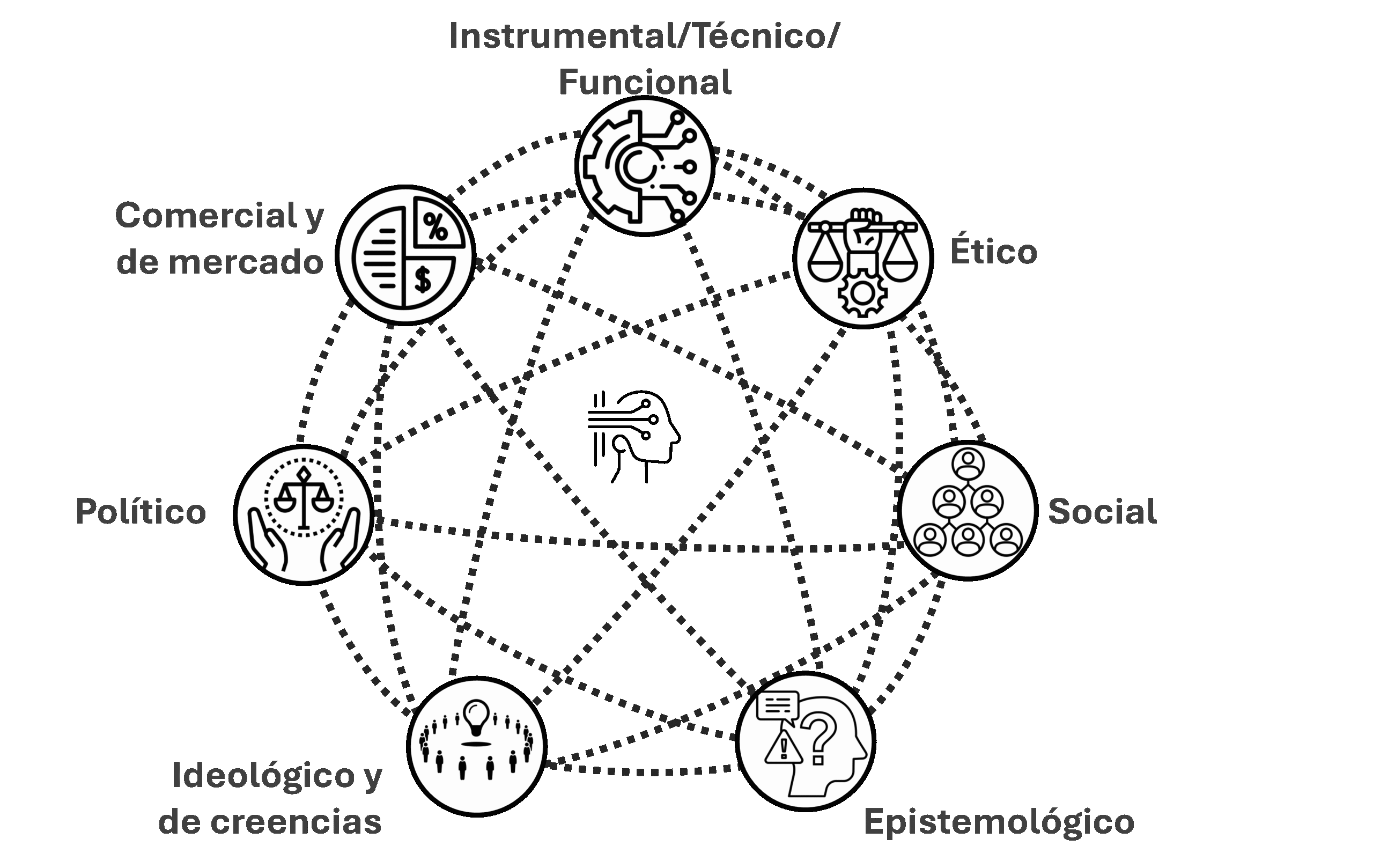 Acaban de salir por fin publicados dos textos (los tenéis al final del post)  en los que, junto con Ana Yara Postigo Fuentes y Amaia Arroyo Sagasta, profundizamos en el análisis de la IA desde una perspectiva prismática. y afirmamos que la IA –en su calidad de tecnología eductaiva– debería entenderse desde una perspectiva que entienda al menos 7 dimensiones: instrumental, ética, epistemológica, ideológica, política, social y comercial y de mercado.